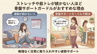 ストレッチや筋トレが大切だと分かっていても、続けるのが難しいと感じる方は少なくありません。そのような場合は、無理なく日常に取り入れやすい方法を選ぶことも一つの考え方です。骨盤サポートガードルは、着用することで姿勢を意識しやすくするサポートア...